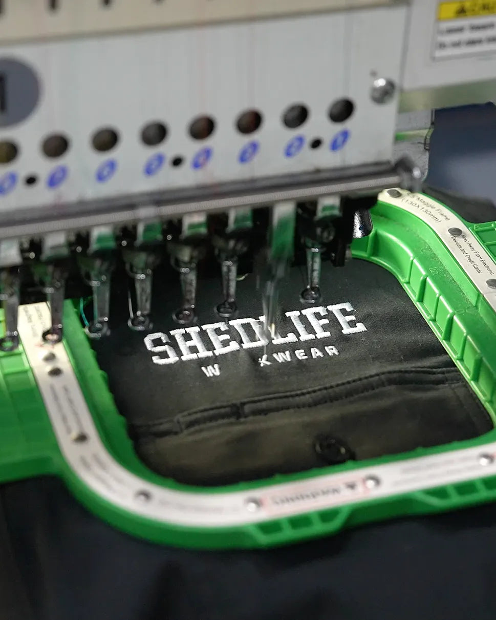 To keep the purchasing experience is simple as possible we've setup an in-house embroidery option for all new Shedlife Workwear gear.