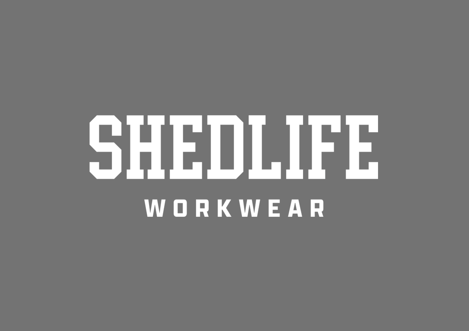 Shedlife Workwear vinyl cut sticker measuring in at 150mm x 50mm.